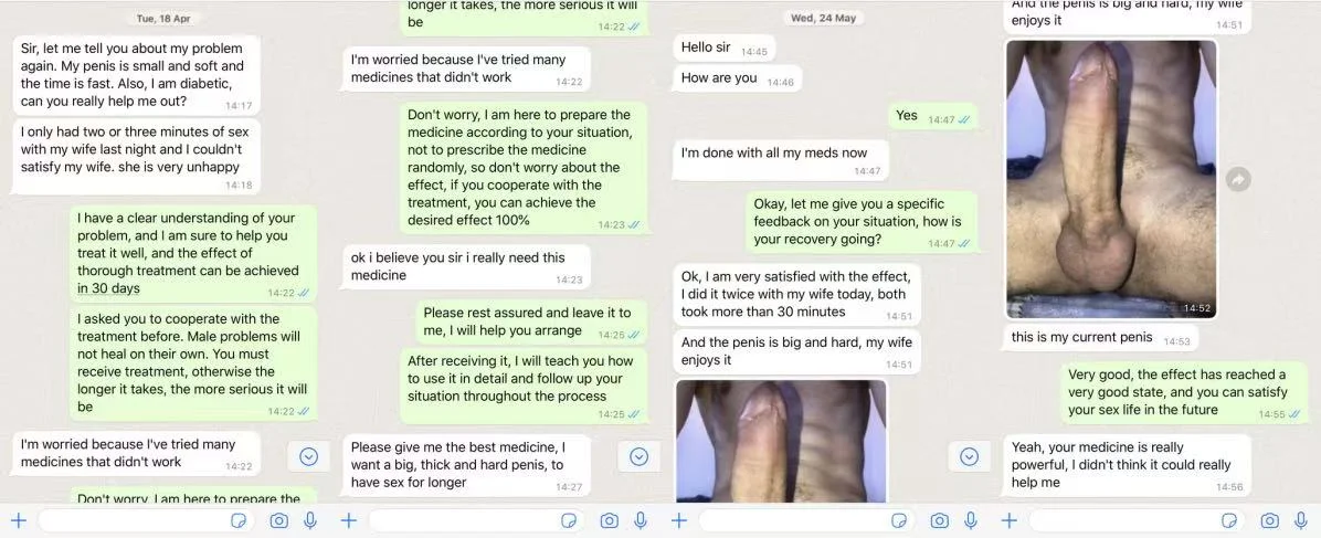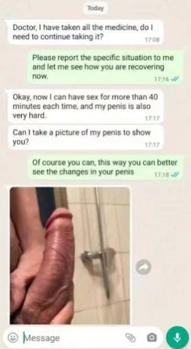 Nach 3 Behandlungen ist mein Penis um 8 cm gewachsen. Meine Frau ist so aufgeregt, dass sie mich nicht verlassen kann. Sie zittert jedes Mal vor Freude, wenn wir Sex haben.